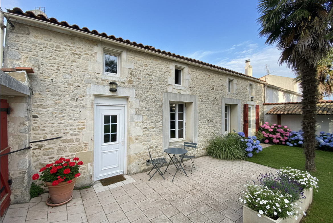Située à deux pas des commerces locaux, cette charmante maison charentaise de 134 m², exposée plein sud, prend place sur un terrain clos et arboré de 372 m². Elle est complétée par un studio indépendant de 44 m², idéal pour accueillir famille, amis ou générer un revenu locatif.