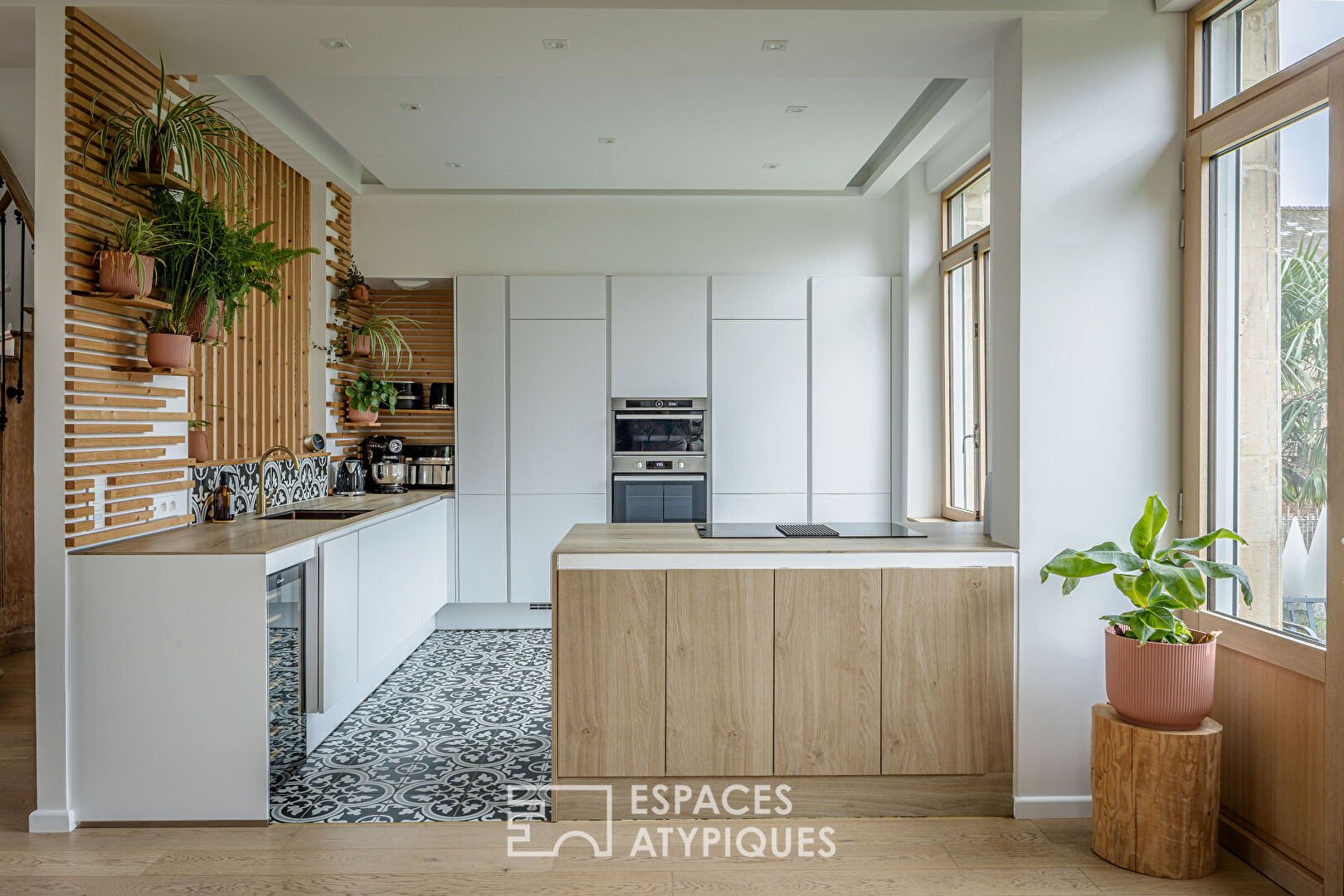 La maison principale, 210 m² totalement restaurée avec goût et des matériaux de qualité. L’atmosphère chaleureuse et raffinée est pensée pour une vie de famille. Idéalement agencée, la maison offre de généreux volumes baignés de lumière. La cuisine, ouverte sur un vaste salon-salle à manger, profite d’une belle luminosité traversante et de vues dégagées sur le jardin paysager, la terrasse et la piscine. Les étages accueillent trois belles et grandes suites parentales, chacune disposant de sa salle d’eau et de son dressing, garantissant confort et intimité.