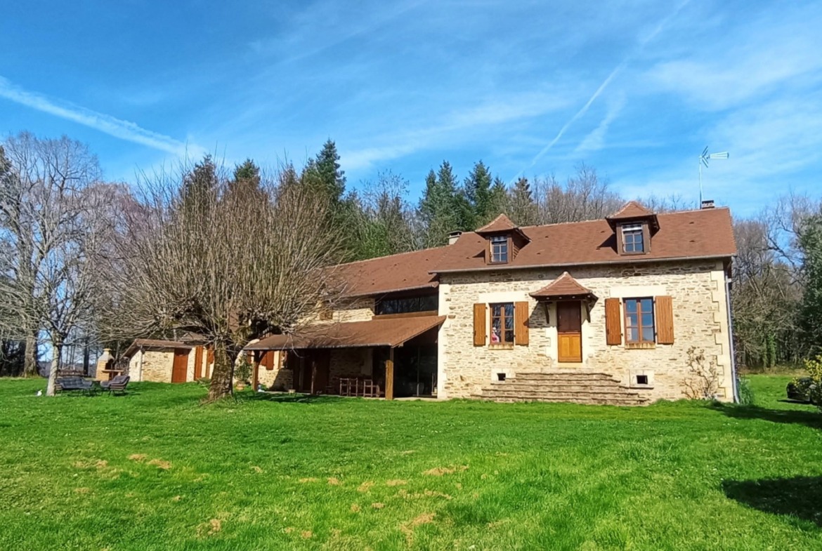 Située à Jumilhac-le-Grand, au cœur du Périgord vert, cette authentique longère en pierre offre un cadre de vie exceptionnel, au calme absolu, avec une vue dégagée sur la campagne.