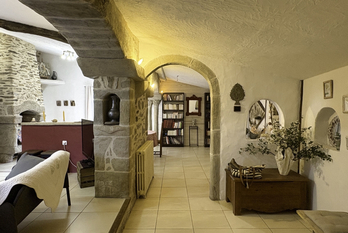 Dès l’entrée, le charme opère. Les voûtes en pierre, les volumes généreux et l’authenticité des matériaux créent une atmosphère chaleureuse et unique. La pièce de vie séduit immédiatement par son caractère et son cachet rare.