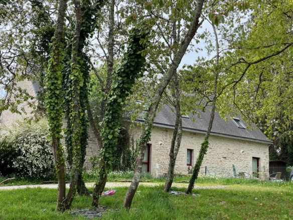 Une grange monumentale a été entièrement reconstruite. Avec sa charpente et sa couverture neuves, elle offre une structure saine organisée en plusieurs volumes : espace principal, atelier avec mezzanine et écuries intégrées. C’est une base parfaite pour un aménagement sur mesure (réception, gîtes ou extension de l’habitat).